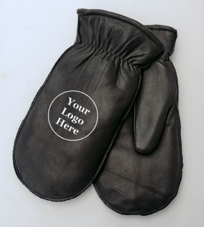Genuine Deerskin Leather with Sherpa Lining on the inside. Individual finger slots are found when sliding your hand inside the mitten.