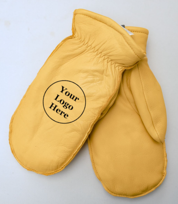 Genuine Deerskin Leather with Sherpa Lining on the inside. Individual finger slots are found when sliding your hand inside the mitten.