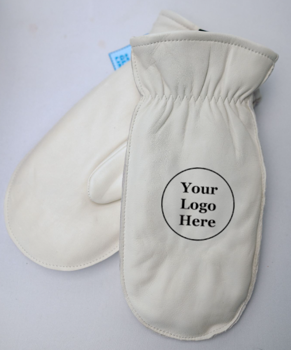 Genuine Deerskin Leather with Sherpa Lining on the inside. Individual finger slots are found when sliding your hand inside the mitten.