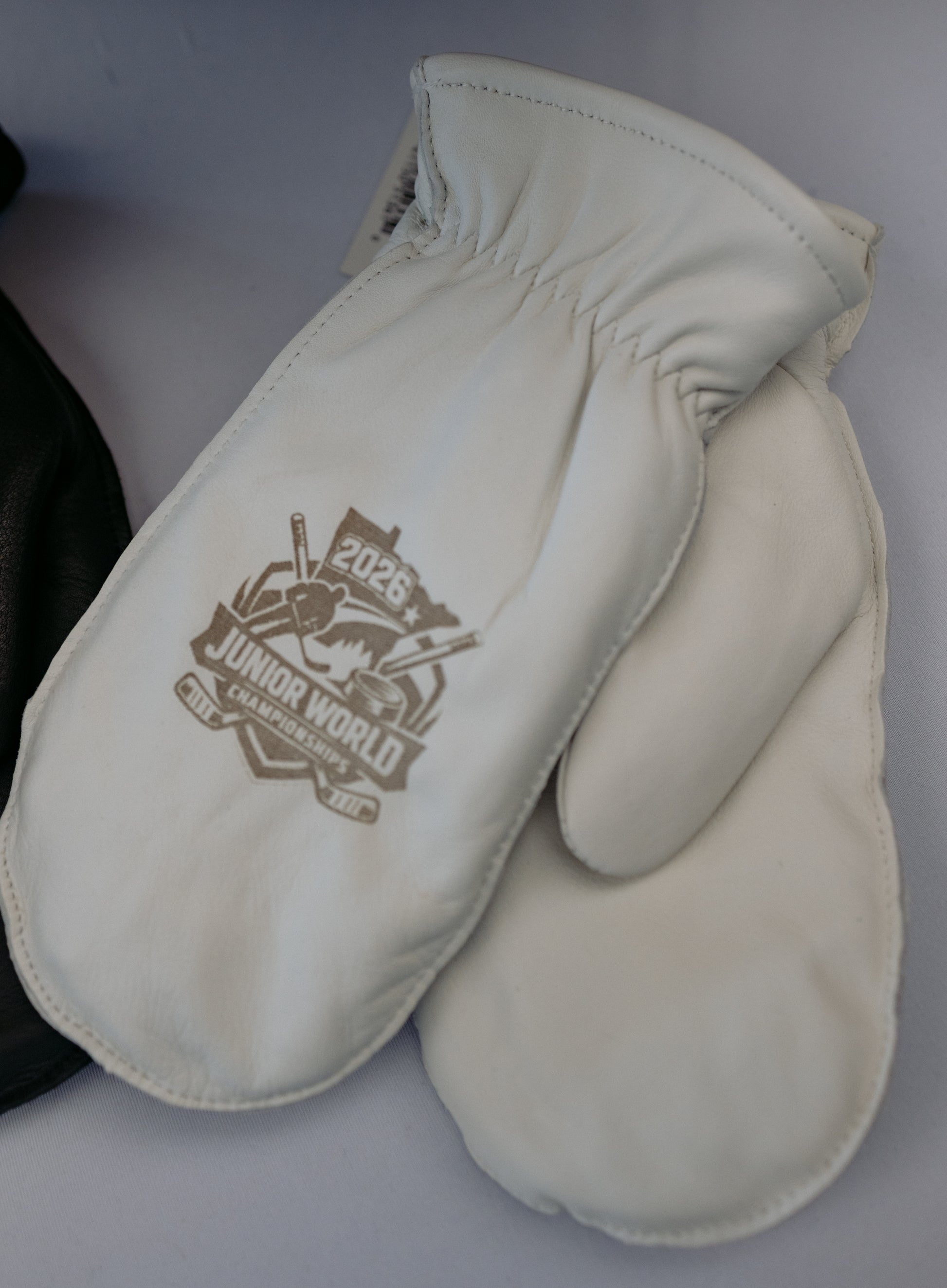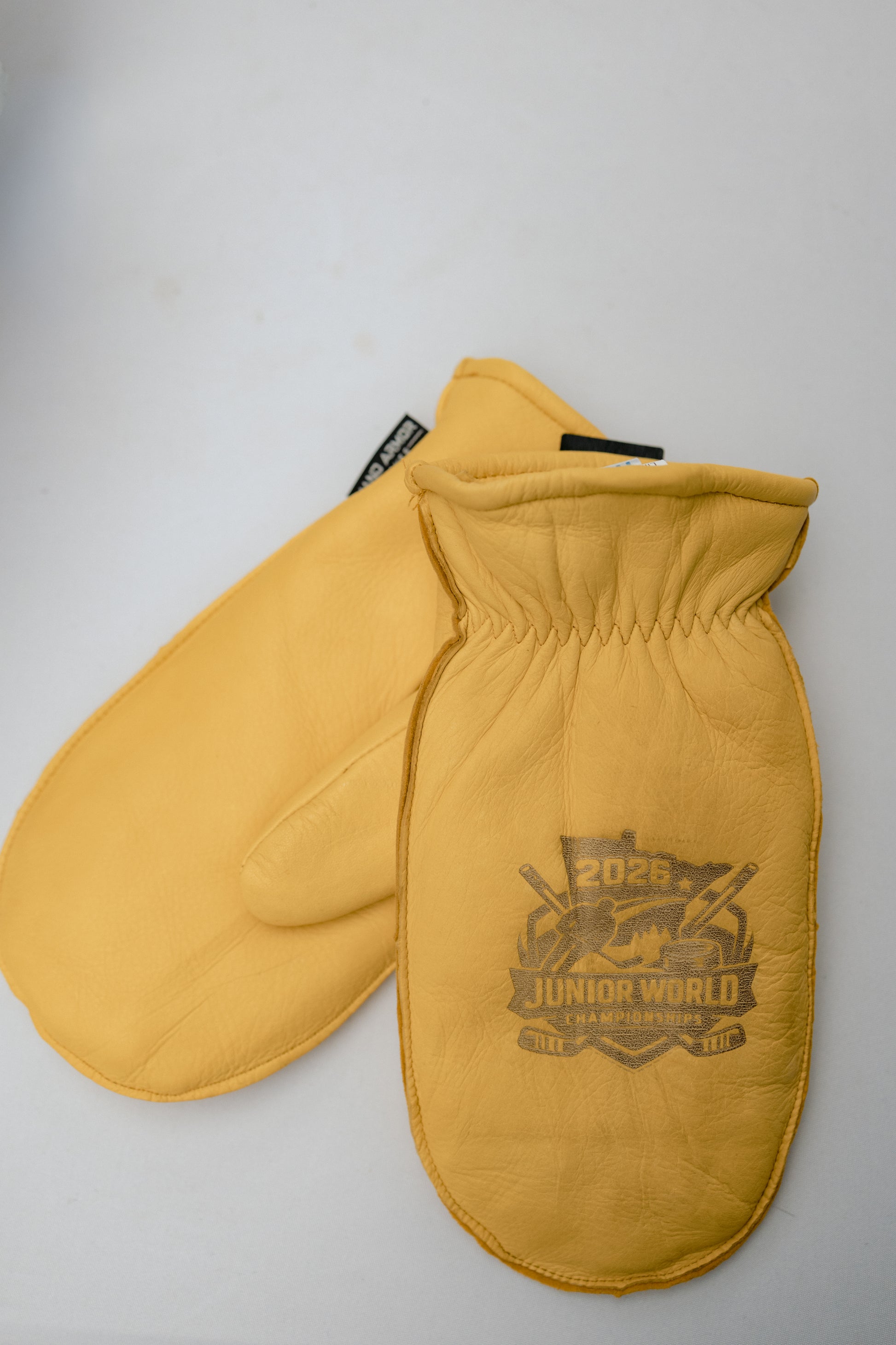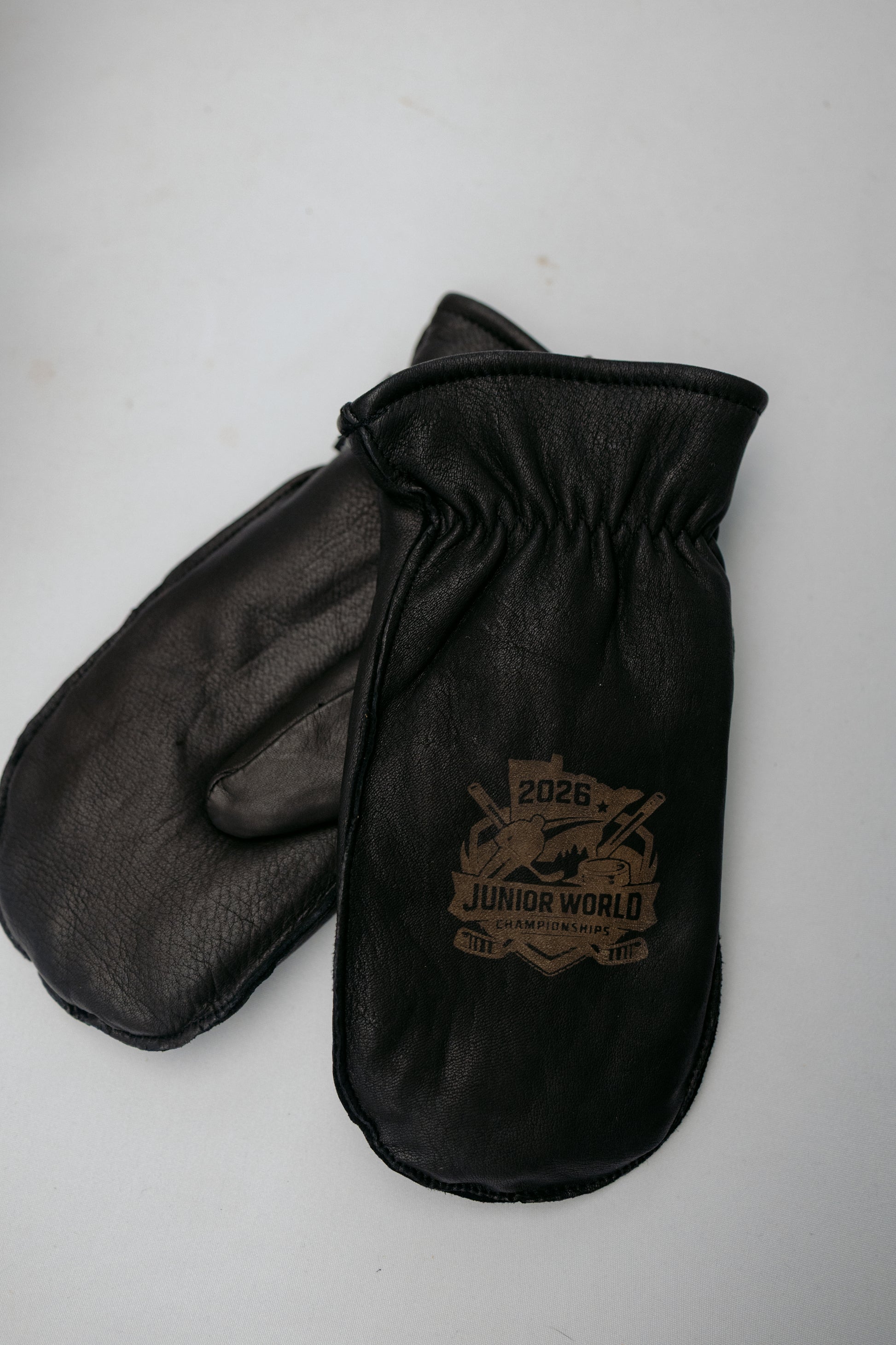 Genuine Deerskin Leather with Sherpa Lining on the inside. Individual finger slots are found when sliding your hand inside the mitten.